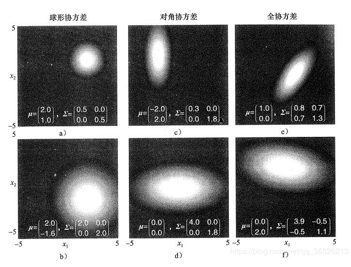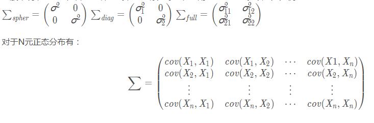一般来说,协方差矩阵有三种形式,分别称为球形、对角和全协方差。以二元为例: