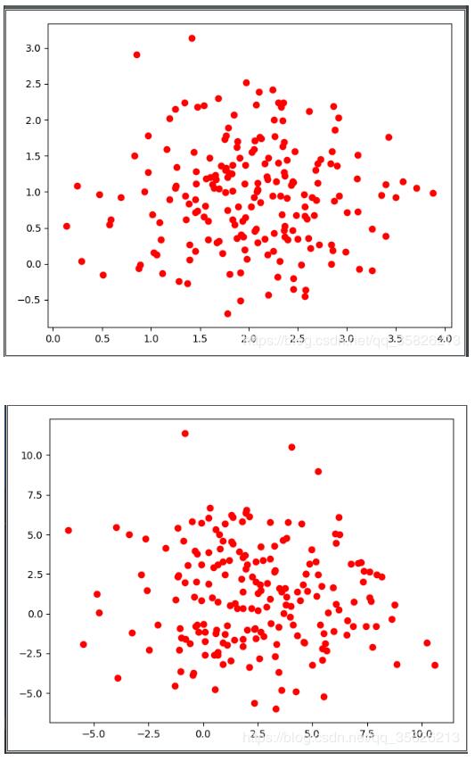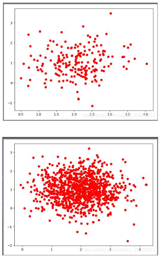 这个函数中,mean代表均值,是在每个维度中的均值。cov代表协方差矩阵,就像上面讲的那种形式,协方差矩阵值的大小将决定采样范围的大小。size代表需要采样生成的点数,此时输出大小为(N*D)的坐标矩阵。