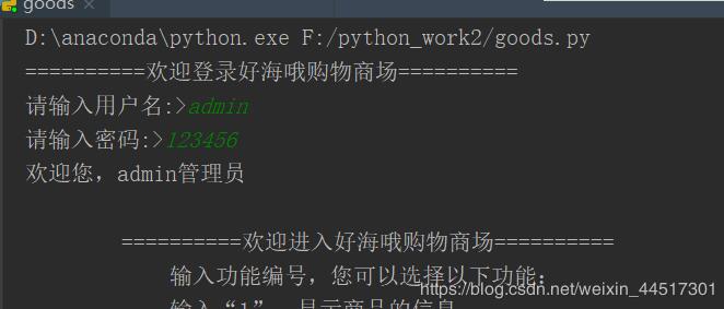 输入“1”:显示商品的信息