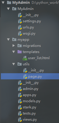在我的app下创建一个page.py文件,进行封装,我是先在我的app下创建了一个utils文件再创建page.py