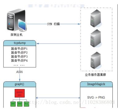 scapy(http://www.secdev.org/projects/scapy/)是一个强大的交互式数据包处理程序,它能够对数据包进行伪造或解包,包括发送数据包、包嗅探、应答和反馈匹配等功能。可以用在处理网络扫描、路由跟踪、服务探测、单元测试等方面,本节主要针对scapy的路由跟踪功能,实现TCP协议方式对服务可用性的探测,比如常用的80(HTTP)与443(HTTPS)服务,并生成美观的路由线路图报表,让管理员清晰了解探测点到目标主机的服务状态、骨干路由节点所处的IDC位置、经过的运营商路由节点等信息。