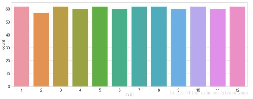 sn.countplot(train.mnth)#离散型特征可使用,描述样本点出现的次数。