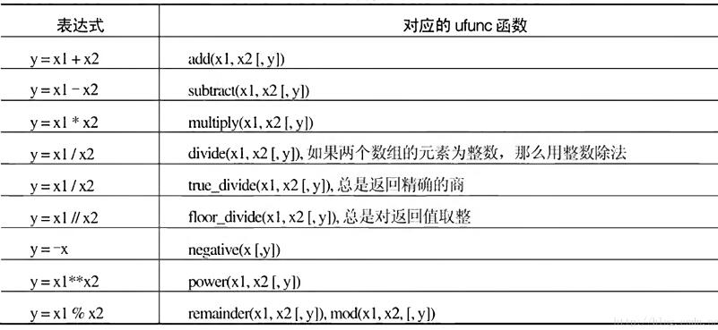 numpy提供的四则ufunc有如下一些: