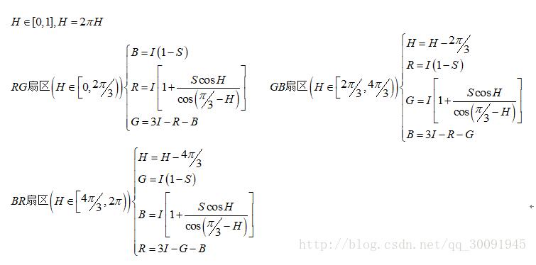 HSI转化成RGB的公式为: