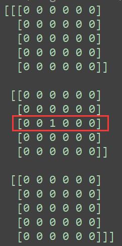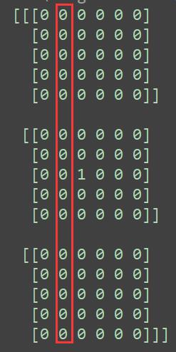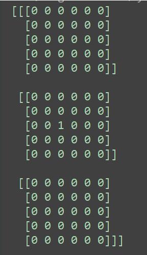 def test3D(): import numpy as np data_array = np.zeros((3, 5, 6), dtype=np.int) data_array[1, 2, 2] = 1 print(data_array)