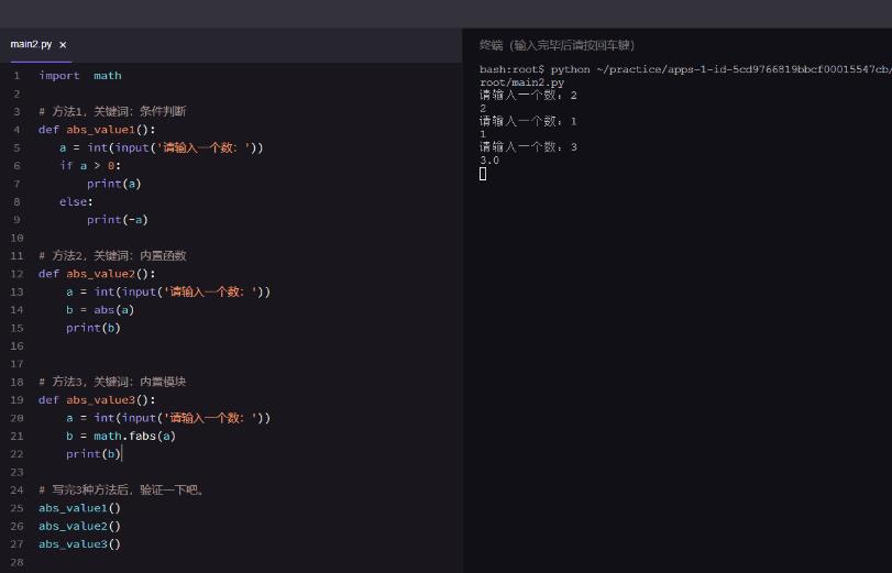 abs()返回是float和int类型,math.fabs()返回是float类型