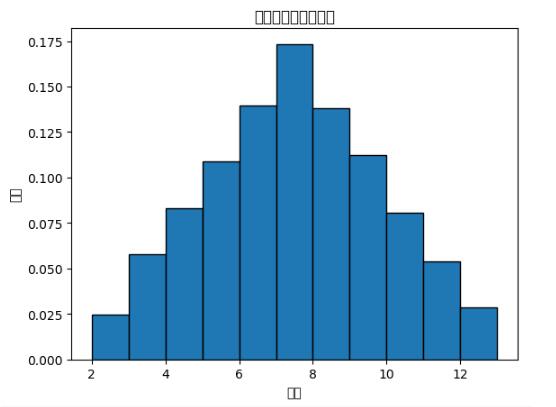 plt.hist(roll_list, bins=range(2,14),normed=1,edgecolor='black',linewidth=1) #normed是归一化,求频率。设置边界颜色及宽度