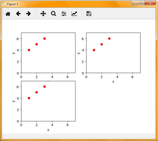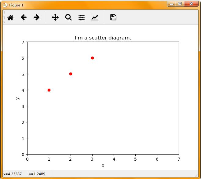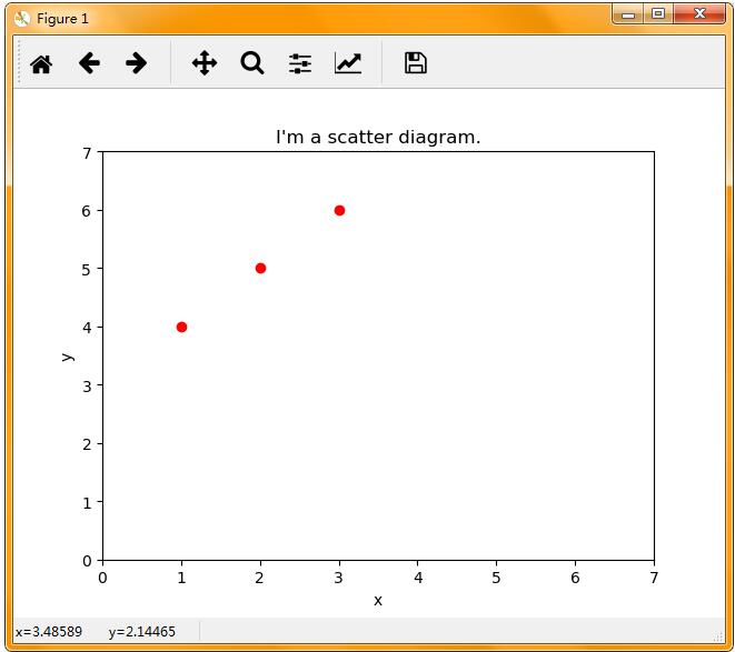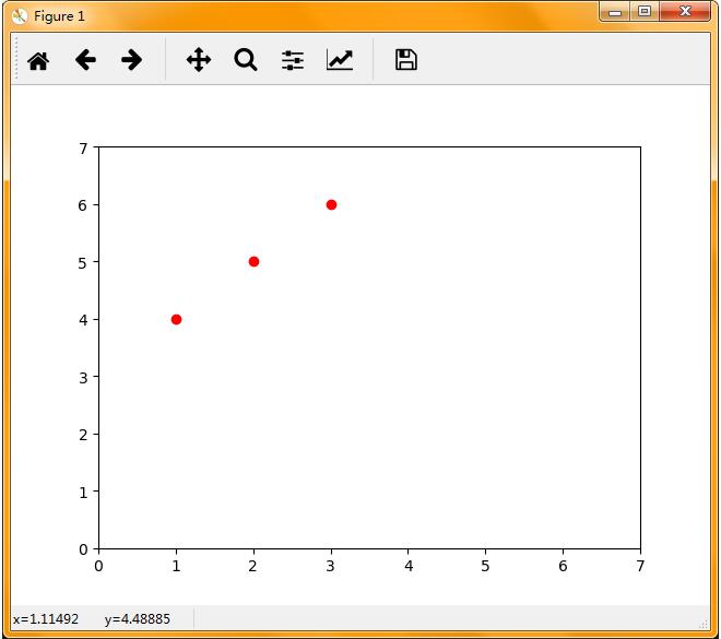 import matplotlib.pyplot as plt plt.xlim(xmax=7,xmin=0) plt.ylim(ymax=7,ymin=0) plt.plot([1,2,3],[4,5,6],'ro') plt.show()