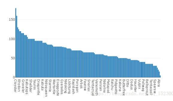 #bar 柱状图 df1=df[['Name','Defense']].sort_values(['Defense'],ascending=[0]) data = [go.Bar(x=df1['Name'],y=df1['Defense'])] py.iplot(data, filename='jupyter-basic_bar')