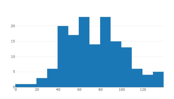 #直方图Histogram data = [go.Histogram(x=df['Attack'])] py.iplot(data, filename='basic histogram')