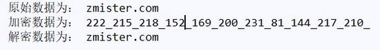 如果我们将字符串”zmister”使用这个加密方法进行加密,最终会得到如下所示的加密字符串: