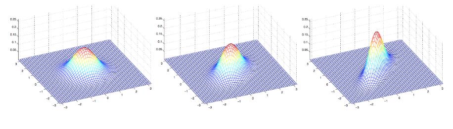 通过对比右边和中间的两幅图发现,通过减少主对角元素可以让概率密度图像变得“收缩”,不过是在相反的方向上。
