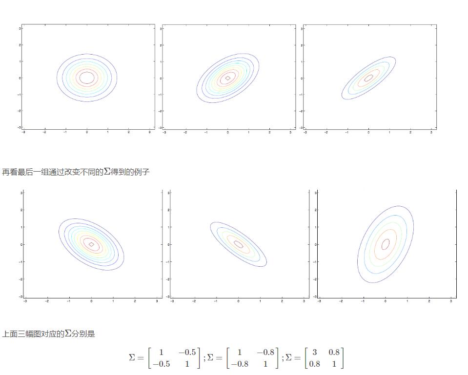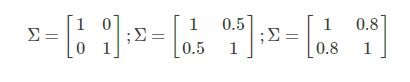 上图中展示的三个高斯分布对应的均值均为零向量,协方差矩阵分别对应与下面三个