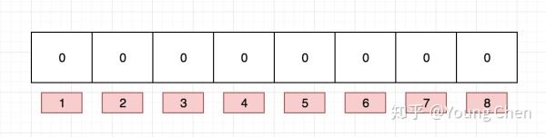 下面以网址为例来进行说明, 例如布隆过滤器的初始情况如下图所示: