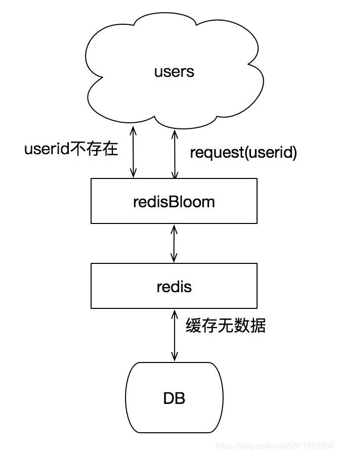 方法二:使用redis提供的redisbloom,同样是将存在的key放入到过滤器中。当请求进来时,先去过滤器中校验是否存在,如果不存在直接返回null。