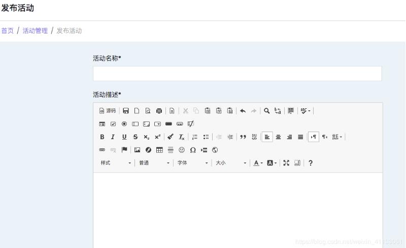 from ckeditor_uploader.fields import RichTextUploadingField class Activity(models.Model): desc = RichTextUploadingField(verbose_name="活动描述")
