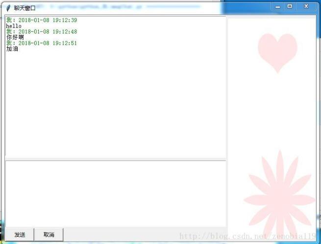 运用tkinter图形库,模拟聊天应用界面,实现信息发送.