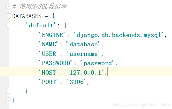 2.在Django项目文件夹下的settings中配置使用MySQL数据库