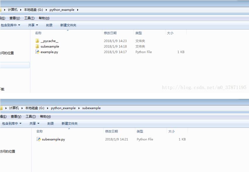 这是测试文件的结构,python_example主文件夹,下面有example.py和一个subexample子文件夹,我要分别调用example.py和subexample.py。
