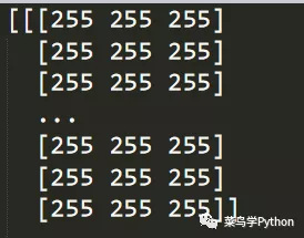 其实上面代码中的ret本质上是一个三维数组,我们可以把它打印出来查看(下图),但是通过cv2.imshow方法展示出来就是一张空白图片了。这其中涉及一些较为底层的内容,大家了解就好,文中不再赘述。