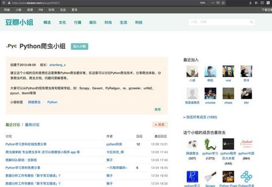 我们找到了豆瓣的Python爬虫小组主页,看起来长成下面这样。