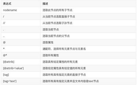 lxml这个库同时 支持HTML和XML的解析,支持XPath解析方式,解析效率挺高,不过我们需要熟悉它的一些规则语法才能使用,例如下图这些规则。