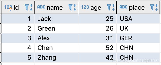 Users(id=5, name='Zhang', age=42, place='CHN')