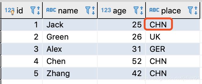 接下来我们演示数据更新。我们需要将Jack的place修改为CHN,完整的Python代码(db_update)如下: