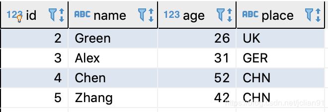 Users(id=4, name='Chen', age=52, place='CHN'),
