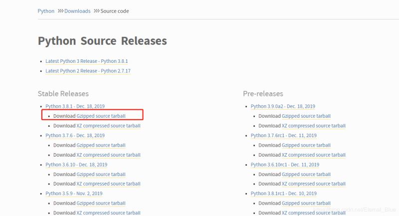官网下载地址:https://www.python.org/downloads/source/