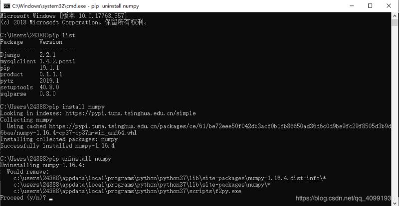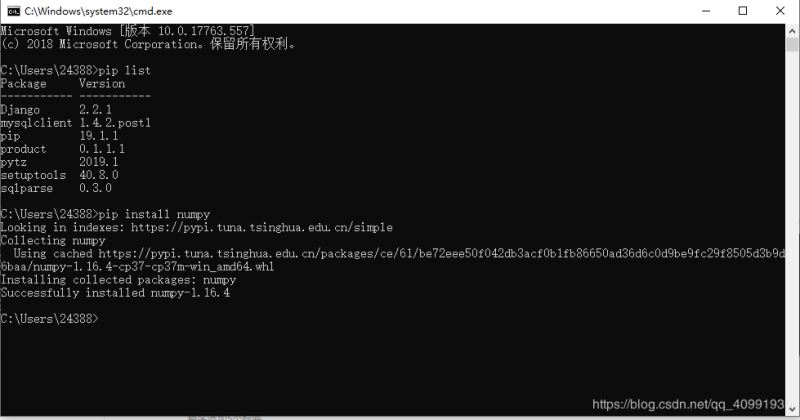 安装python库(我已经下载过numpy包,所以是使用缓存中的包)