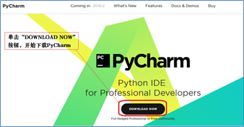(2)在PyCharm下载页面,单击“DOWNLOAD NOW”按钮,如图2所示,进入到PyCharm环境选择和版本选择界面。