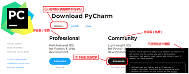 (3)选择下载Pycharm的开发环境为Windows,单击开始下载社区版PyCharm(Communit),如图3所示。