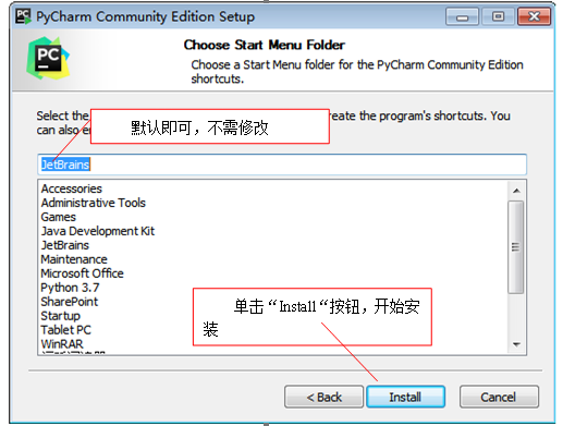 (4)单击Next按钮,进入选择开始菜单文件夹界面,如图8所示,该界面不用设置,采用默认即可,单击Install按钮(安装大概10分钟左右,需耐心等待)。