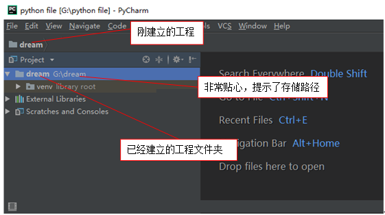 (1)右键单击刚建好的dream项目,在弹出的菜单中选择New-->PythonFile菜单项(一定要选择PythonFile项,这个至关重要,否则无法后续学习),如图21所示。