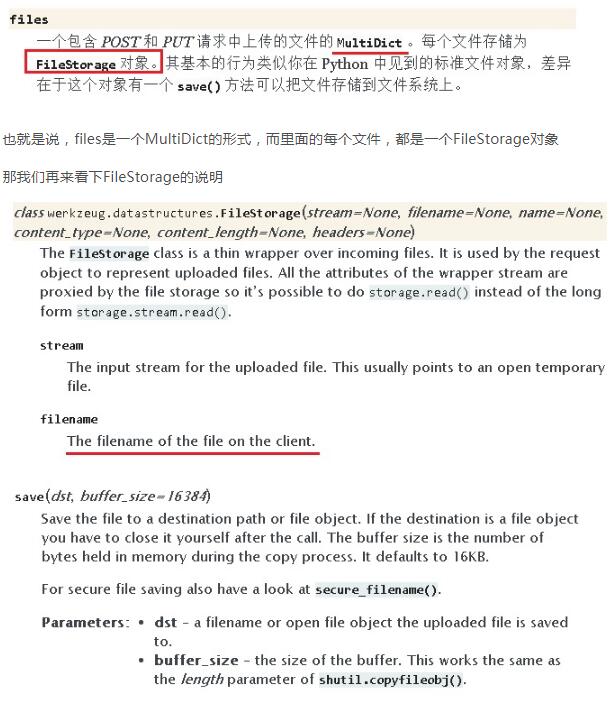 file=request.files['file']表示,从request请求的files字典中,取出file对应的文件。这个文件是一个FileStorage对象,这个我们后面再讲