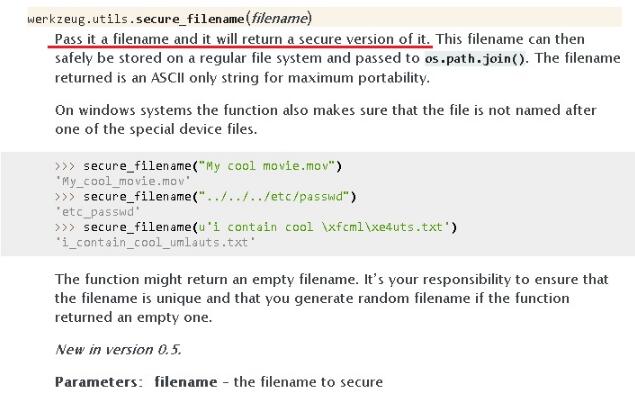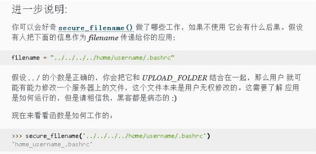 接着,我们要再讲一个功能 secure_filename(),他是防止用于起一些可以影响到系统运行的文件名,来扰乱你的网站