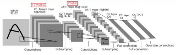 每一个特征映射结果最终都会被堆叠在一起形成一个图像输出,再作为下一步的输入;5就是过滤框架的尺寸,表示我们希望用一个5 * 5的矩阵去和图像中相同尺寸的矩阵进行点乘再相加,形成一个值。