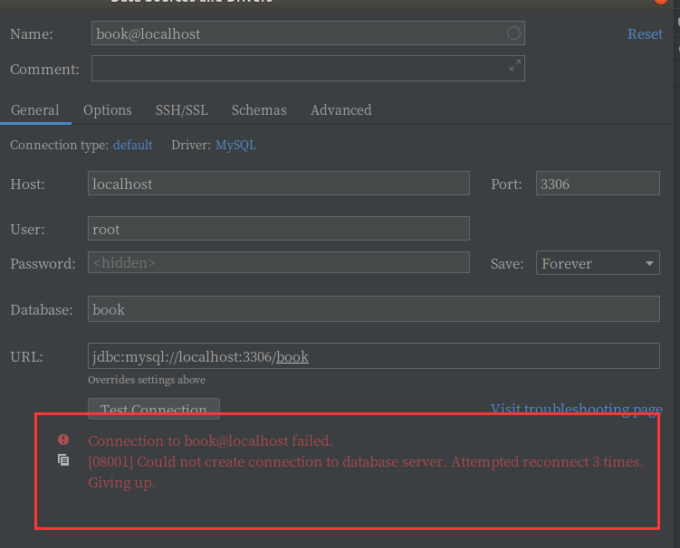 网上找各种博客都说是权限问题,然而我试了之后发现并不是,授予root用户所有权限之后仍然连接不上,我突然想到可能是驱动版本的问题,目前mysql的最新版本是8.0,而驱动的版本也正好是8.0,这之间是不是有什么关联呢。