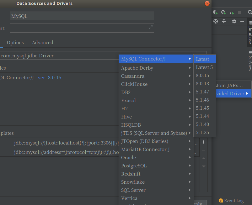 pycharm连接数据库的驱动版本要与mysql的版本对应