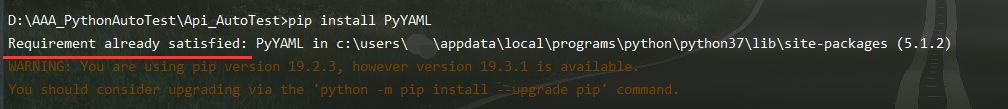 直接使用 pip install PyYAML 就可以(这里我之前是装过的,所以提示我PyYAML已经在这个目录下了,是5.1.2版本的)
