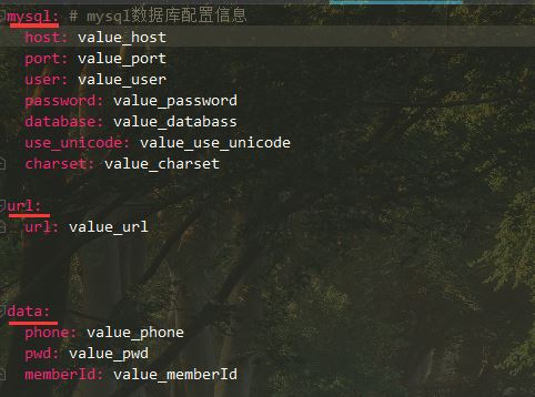 res1= {'mysql': {'host': 'value_host', 'port': 'value_port', 'user': 'value_user', 'password': 'value_password', 'database': 'value_databass', 'use_unicode': 'value_use_unicode', 'charset': 'value_charset'}, 'url': {'url': 'value_url'}, 'data': {'phone': 'value_phone', 'pwd': 'value_pwd', 'memberId': 'value_memberId'}}