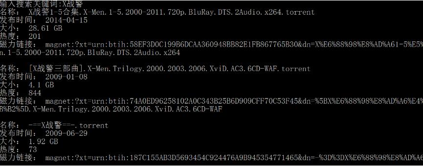 print("磁力链接:",torrent[item][4],'\n')