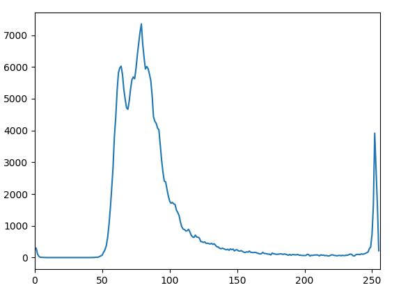 #plt.xlim([0, 256])