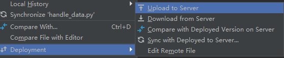 映射之后右键项目中的某个文件,在弹出的选项中找到Deployment,就可以上传到服务器Uploaded to Server,或者从服务器下载对应的版本Download from Server