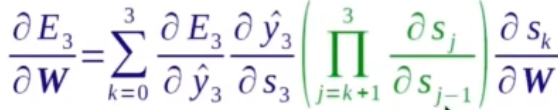 在反向传播中要求损失函数E对参数W的导数,通过链式求导法则可以得到右下的公式