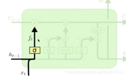如下左图所示为遗忘门结构,上一轮的输出ht-1和数据xt在经过遗忘门选择是否遗忘之后,产生遗忘结果ft