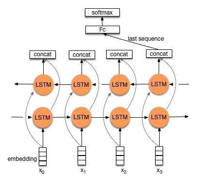 RNN网络不可避免地带来问题就是最后的输出结果受最近的输入较大,而之前较远的输入可能无法影响结果,这就是信息瓶颈问题,为了解决这个问题引入了双向LSTM。双向LSTM不仅增加了反向信息传播,而且每一轮的都会有一个输出,将这些输出进行组合之后再传给全连接层。