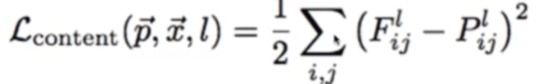 对于内容损失,先选定内容风格图像和结果图像的卷积层,要相同,比如这里选取了卷积层1_1和2_1。然后这两个特征层的后三个通道求平方差,然后取均值,就是内容损失。