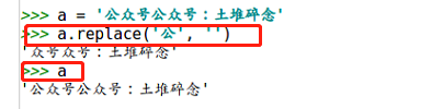 比如,字符串a='公众号公众号:土堆碎念',尝试将其中的公字符删除,将公字符替换成空字符。